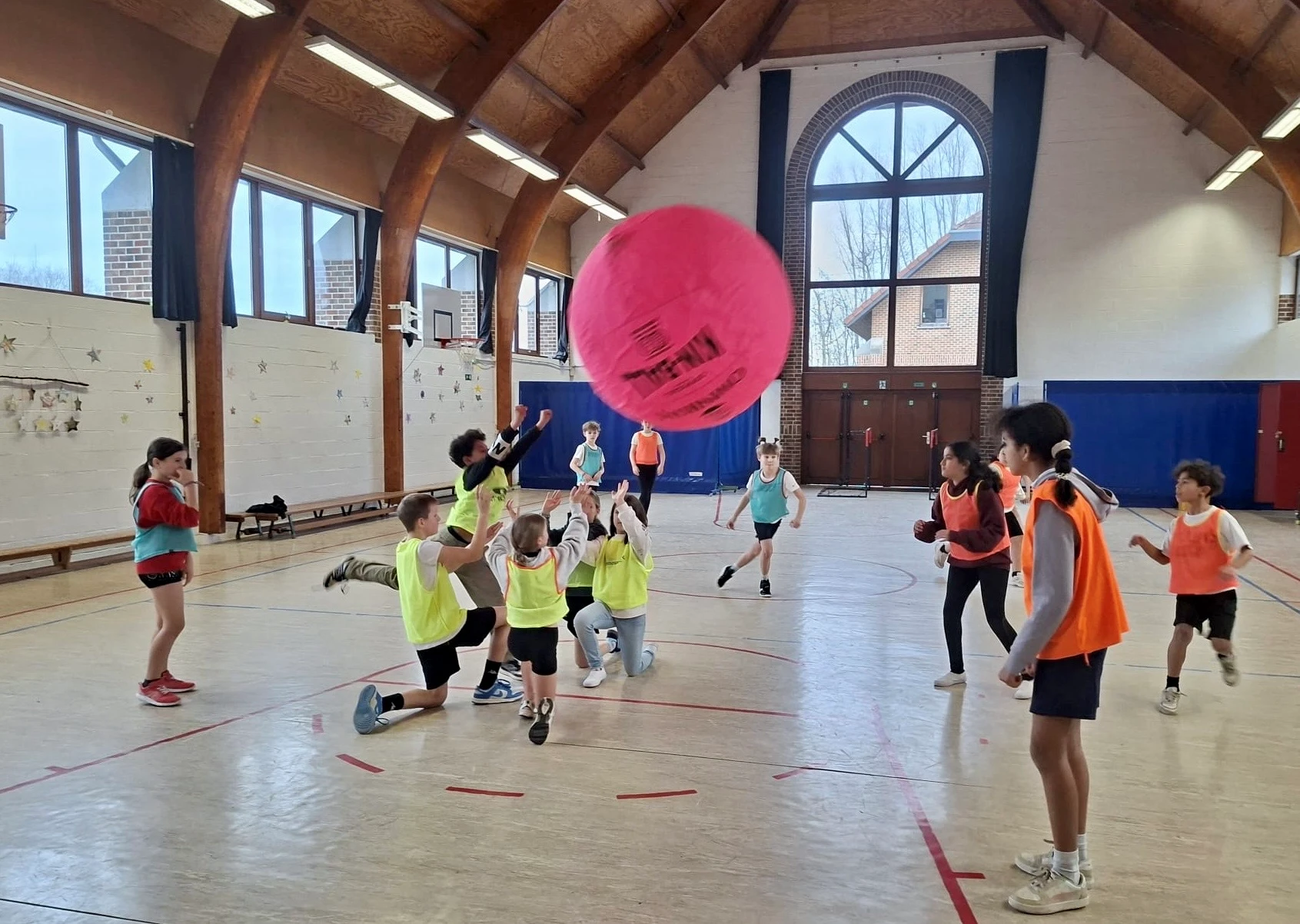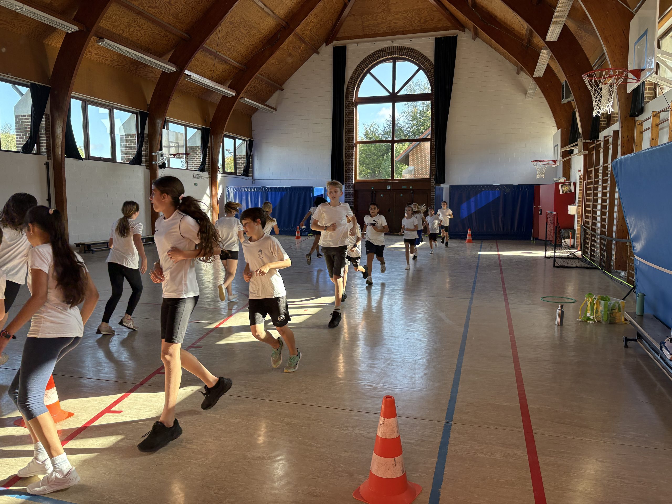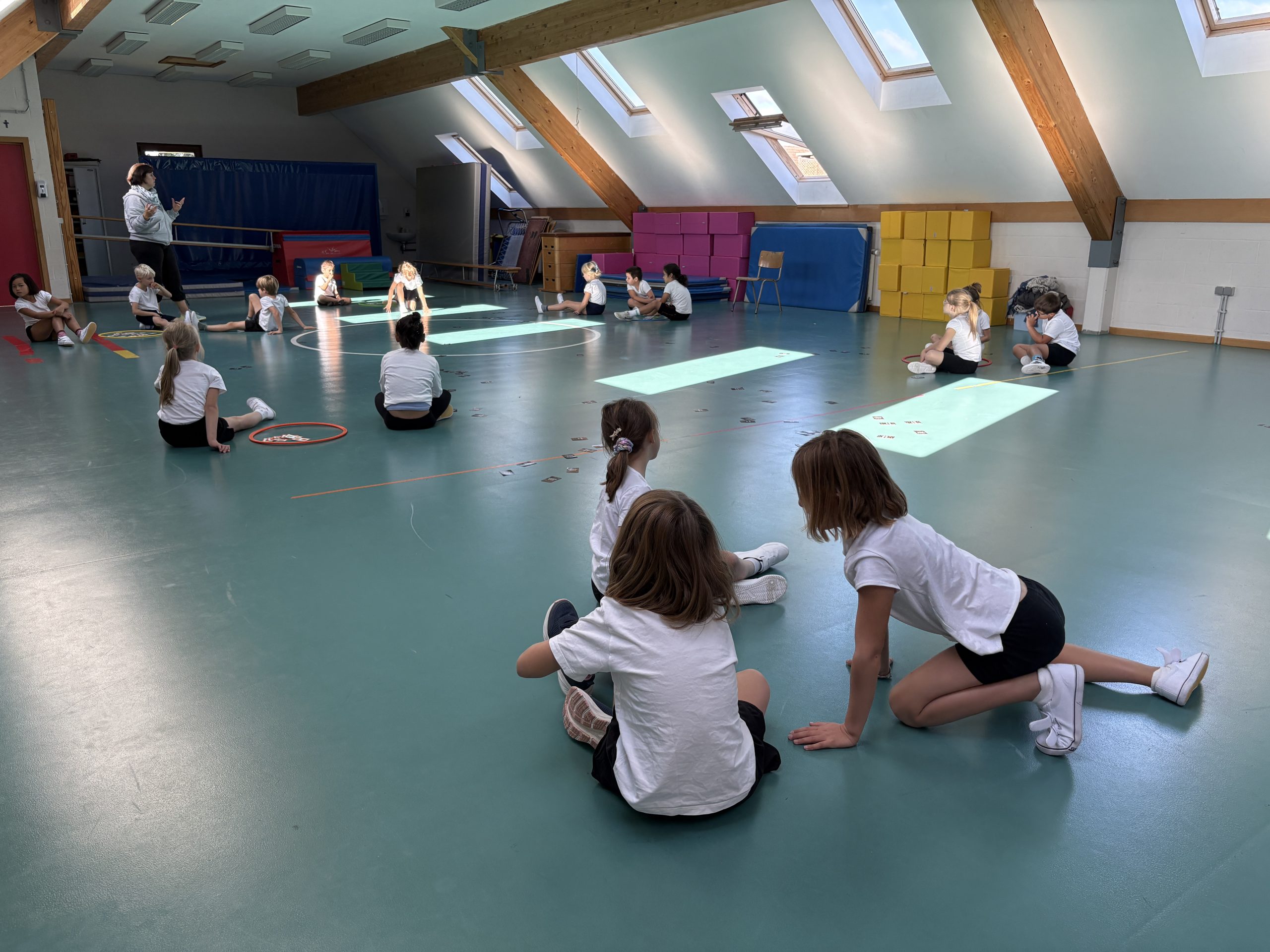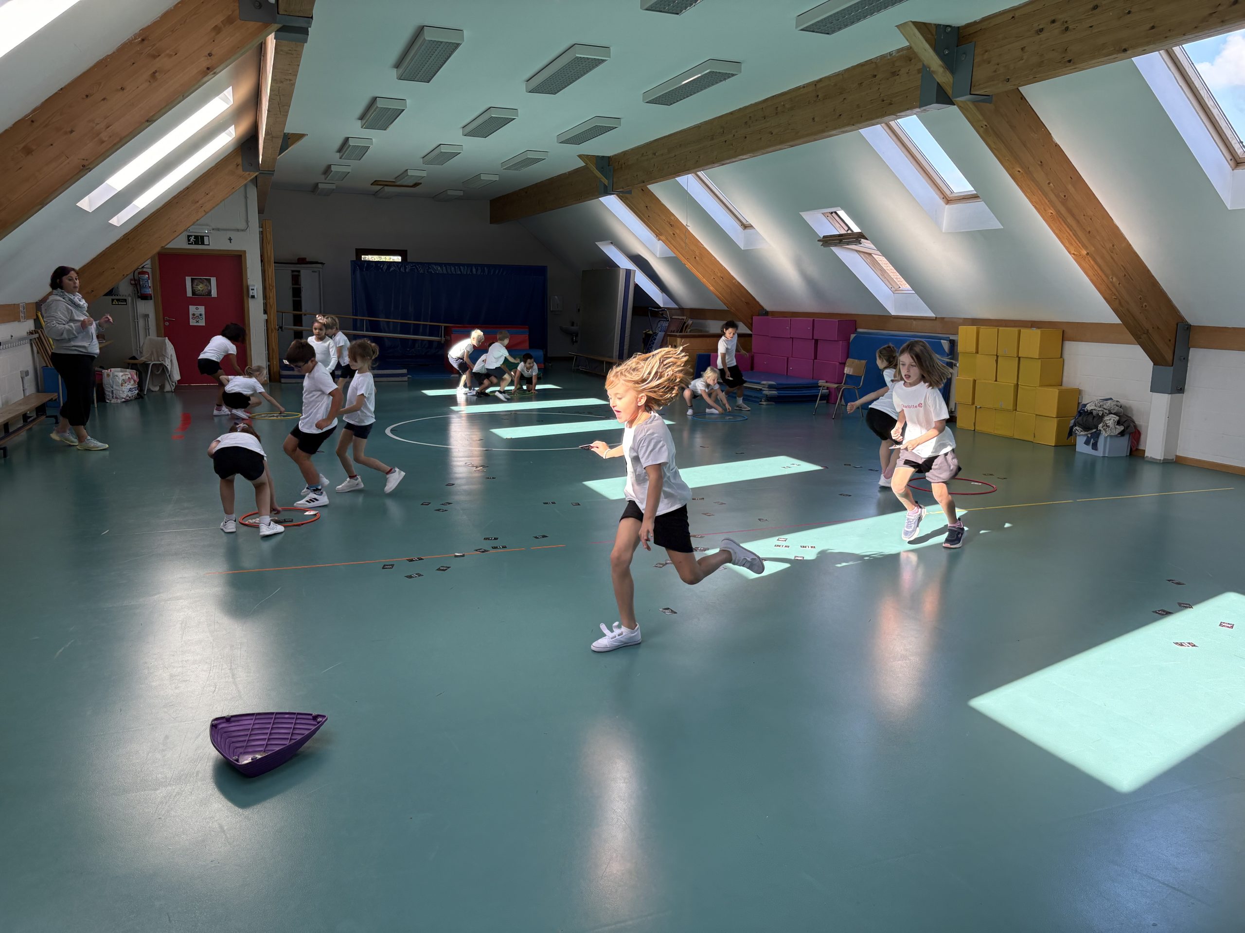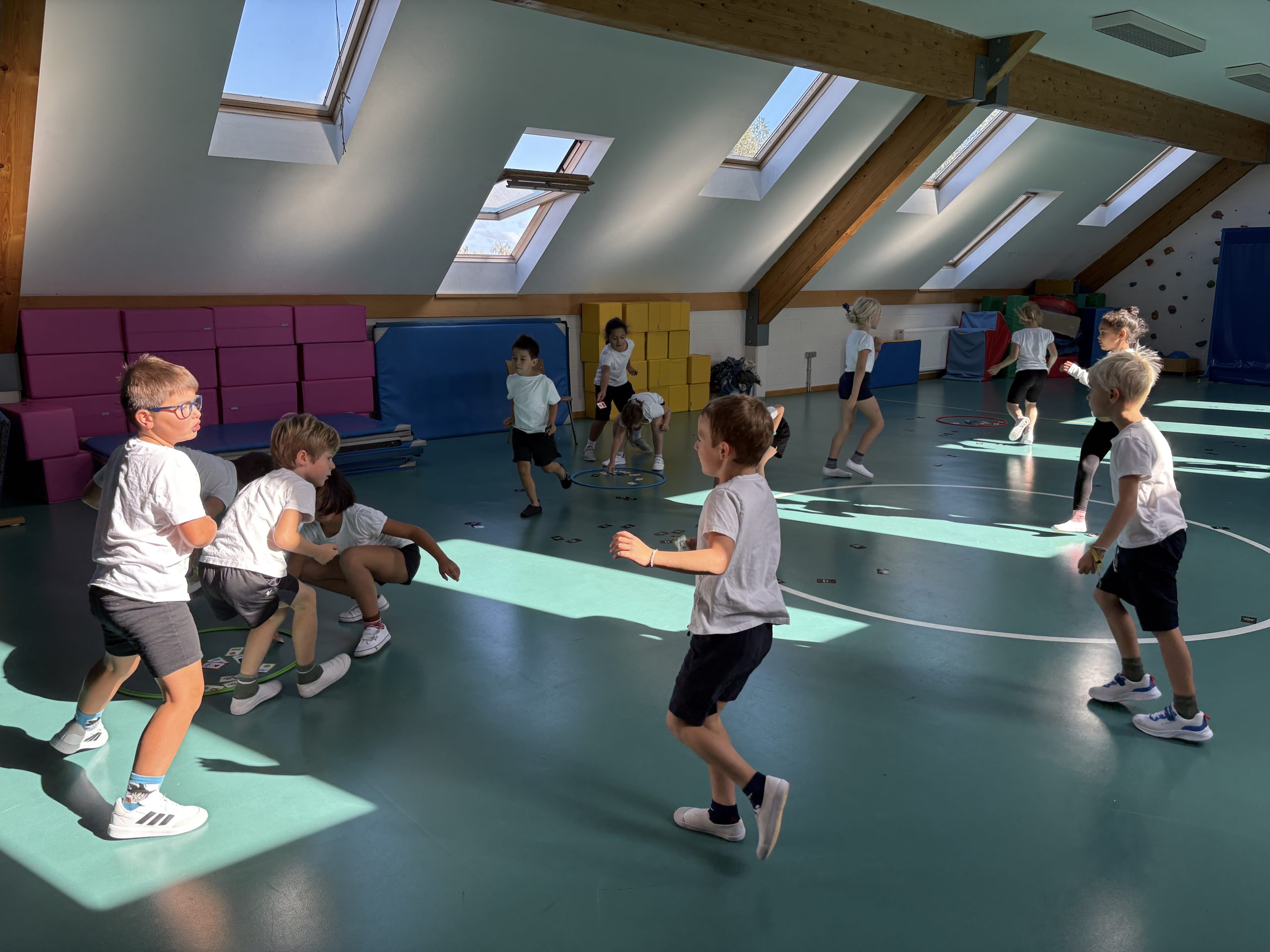 Les enfants de maternelle participent à un cours de psychomotricité dans une salle spécialement aménagée pour eux. Avec du matériel adapté, la psychomotricienne leur propose des activités ludiques et variées, comme des parcours ou des ateliers, pour développer leur motricité en s’amusant. Nos élèves de primaire profitent de la salle de psychomotricité pour les activités rythmiques et la gymnastique.