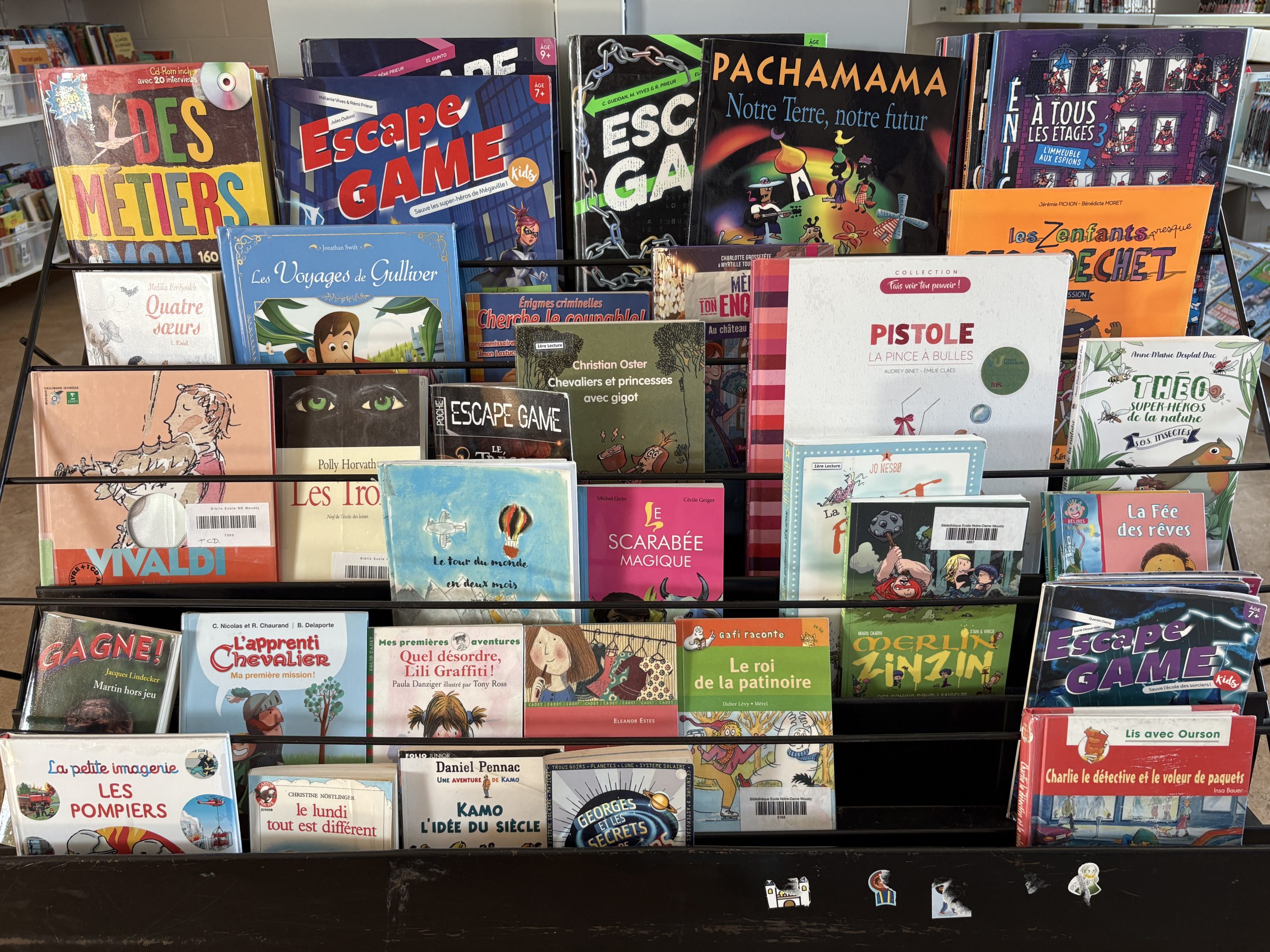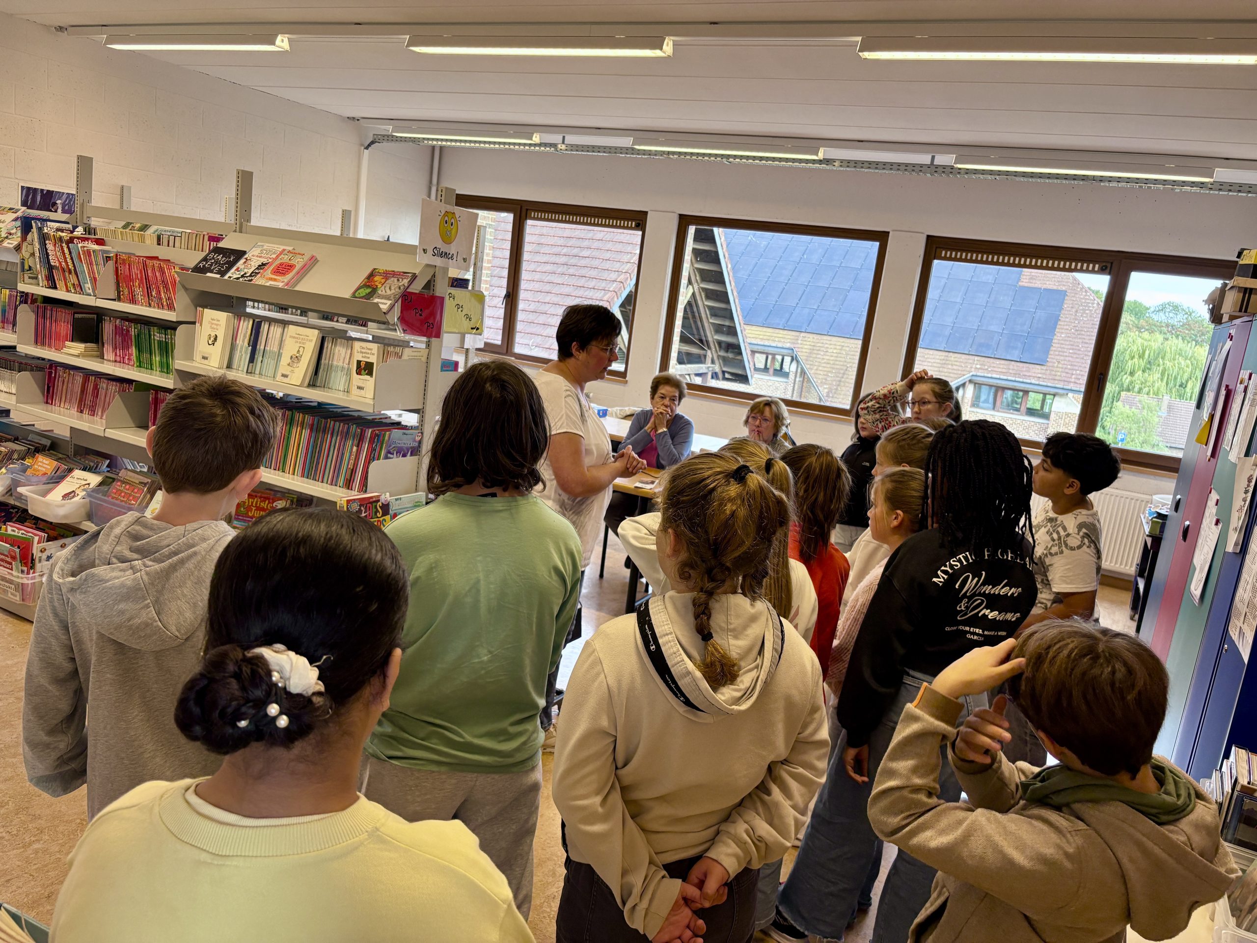 Dès la première primaire, chaque lundi ou mardi, les classes découvrent la bibliothèque. Les enfants peuvent y choisir un livre et se laisser emporter par le plaisir de la lecture.